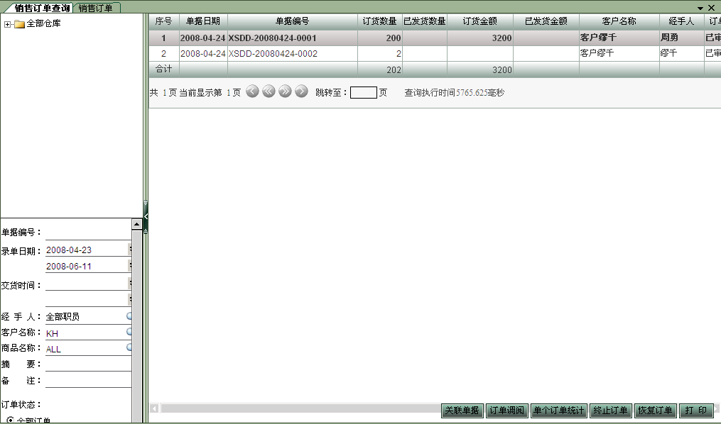 銷售訂單可以幫助用戶對(duì)客戶訂貨情況進(jìn)行管理,讓用戶查詢出某客戶的訂貨情況、某商品的訂貨情況以及訂單完成情況,還可以查詢訂貨庫(kù)存情況。